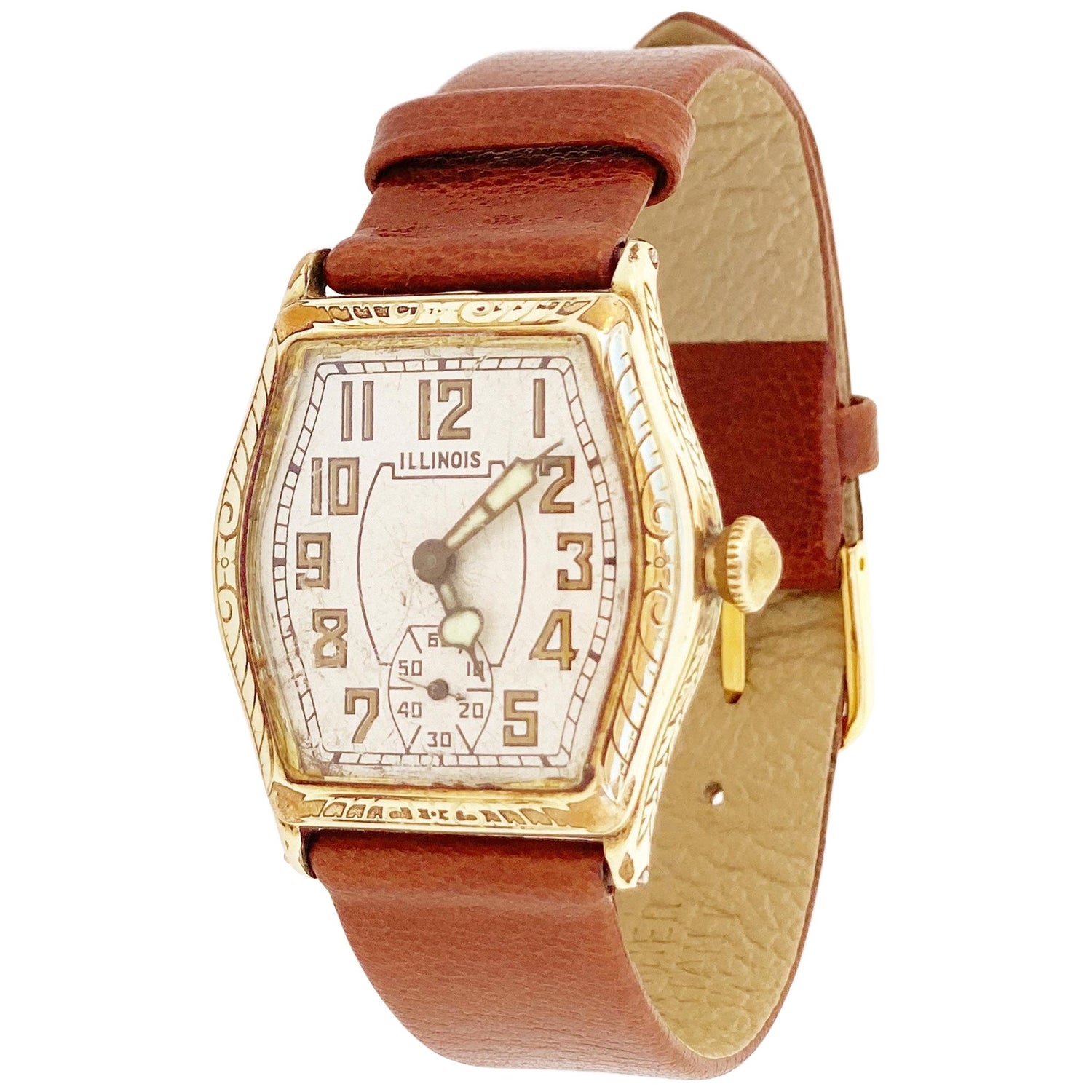 Gold Filled Art Deco Watch With Leather Strap By Illinois 1920s At 1stdibs